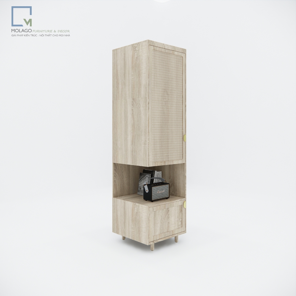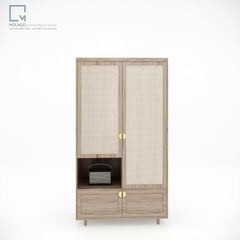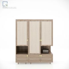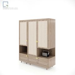 - Chất liệu: Thùng tủ được làm từ MDF melamine bền bỉ. Các cánh tủ được thiết kế với panel mây đan tạo kiểu, mang lại vẻ đẹp tự nhiên và độc đáo.