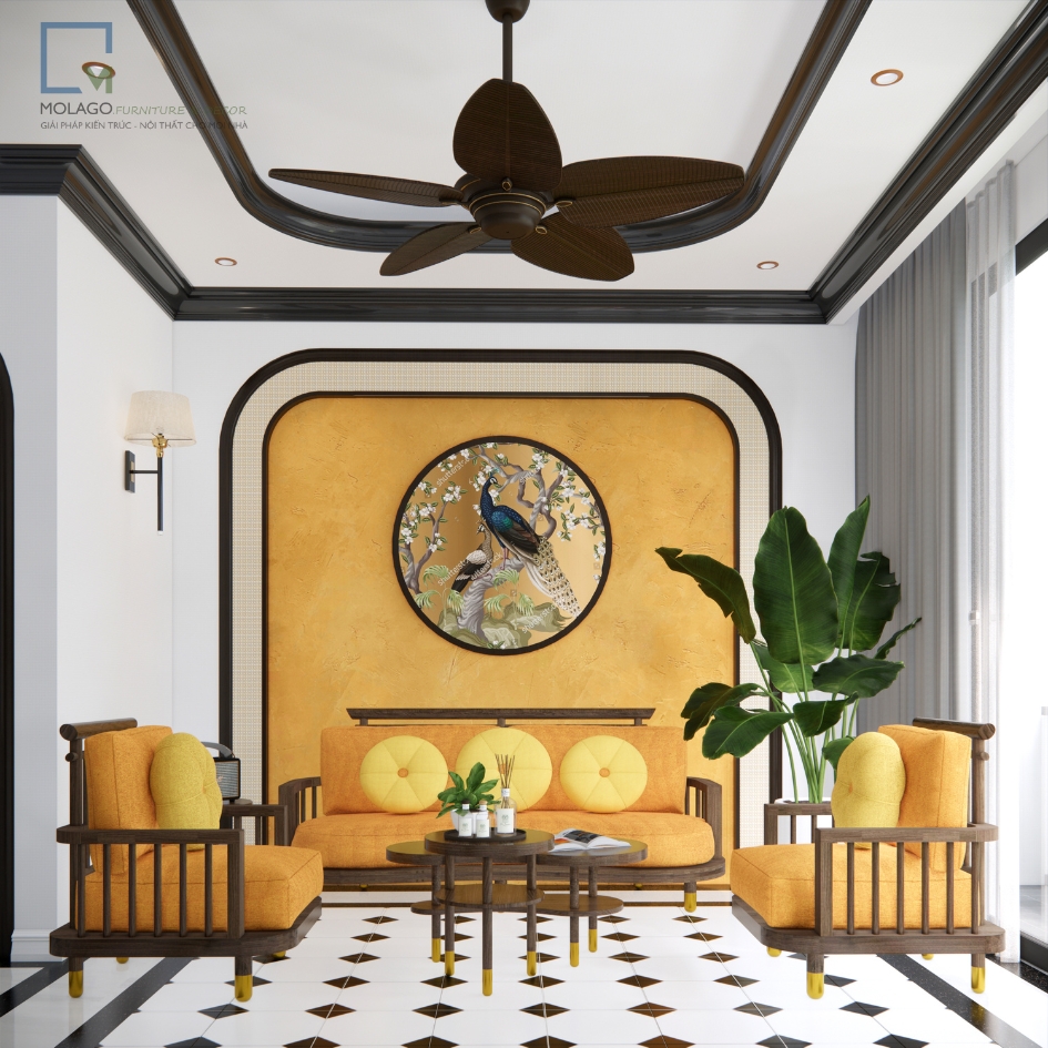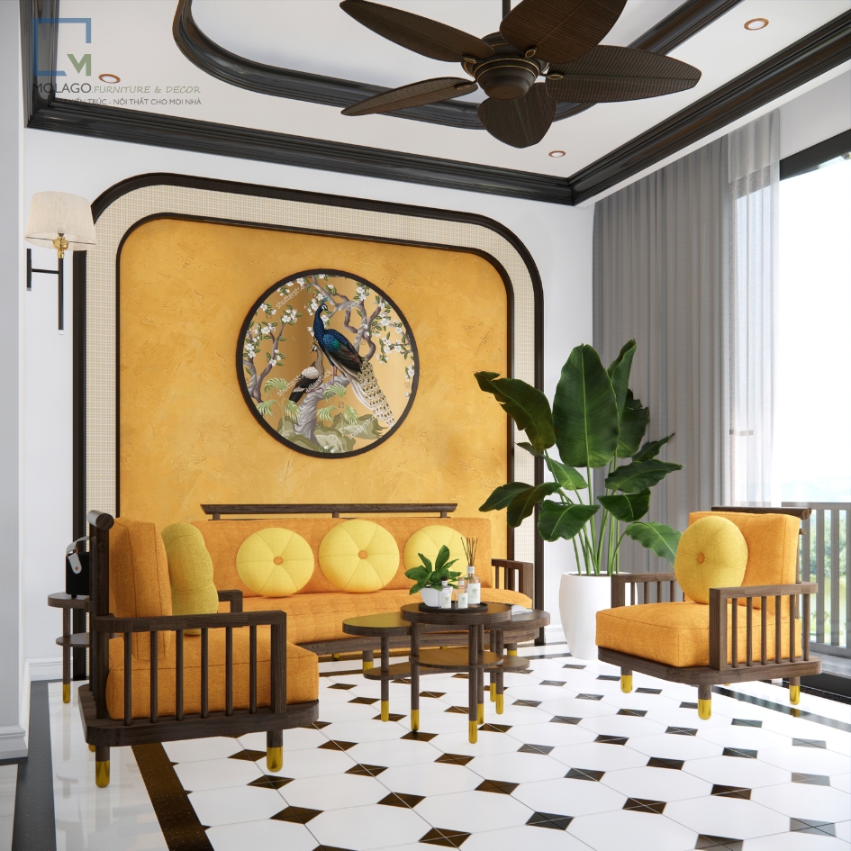 - Phong cách Indochine: Sự kết hợp tinh tế giữa màu vàng và nâu gỗ đậm, mang đến không gian sống cổ điển, thanh lịch, phù hợp với nhiều phong cách nội thất.
